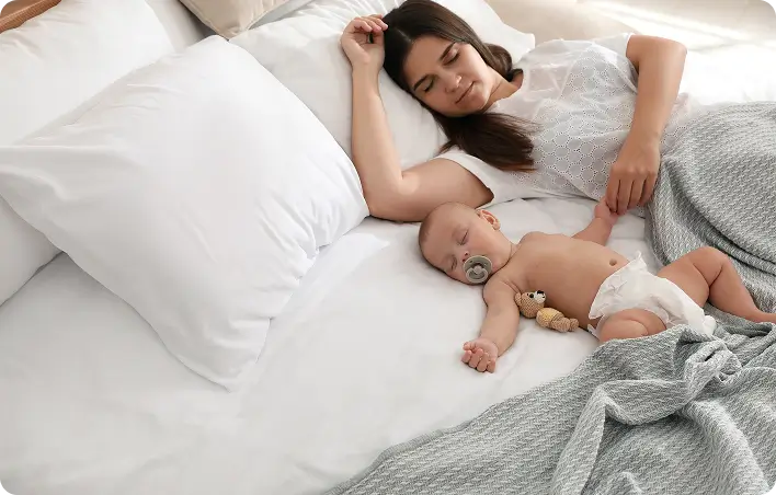 Помните, что употребление алкоголя и психоактивных веществ, особенно при совместном сне, повышает риск жизнеугрожающих состояний, ассоциированных со сном у младенцев.