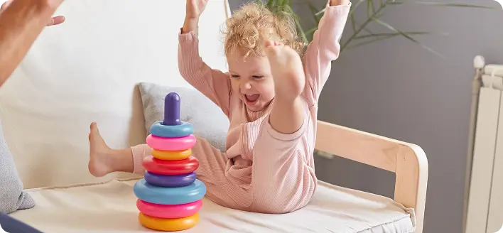 Отличительная особенность интерактивной пирамидки — в винтовом стержне. Кольца нужно не надевать, а накручивать на него — это усложняет задачу для ребёнка. Во время игры малыши учатся составлять разные конструкции, сравнивать цвета и размеры. Простые действия тренируют креативность, терпение и точность — приятный бонус к развитию мелкой моторики.