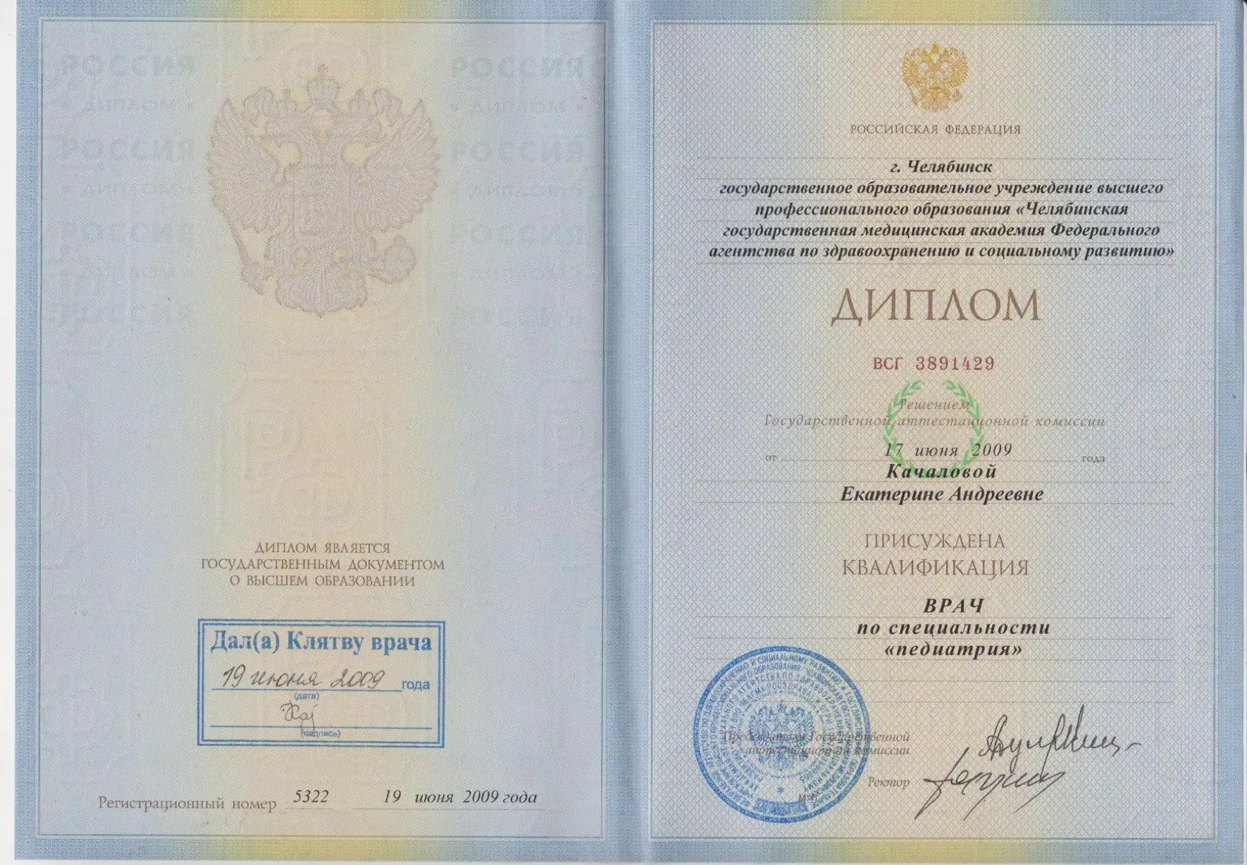Врач акушер-гинеколог (ЮУГМУ, педиатрический факультет, специализация на кафедре акушерства и гинекологии)
