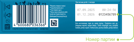- Батончики: на оборотной стороне упаковки (8 знаков)