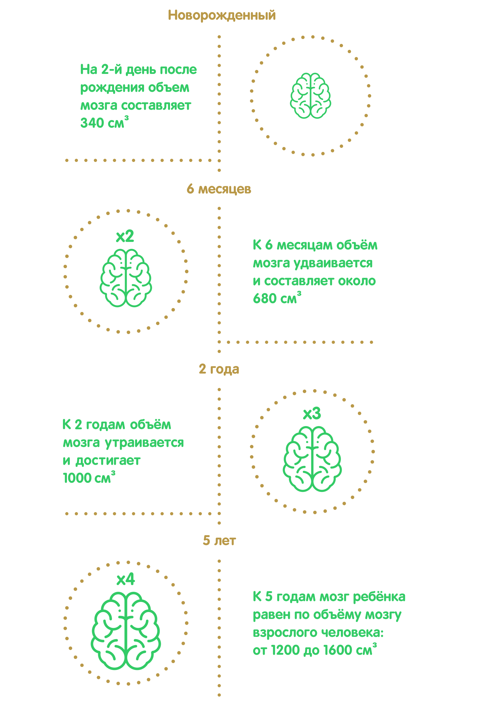 В последние годы интерес к этой теме заметно возрос. В научной литературе активно обсуждается влияние различных компонентов питания, получаемых в оnределенные периоды жизни ребёнка, на его дальмейшее здоровье. Наибольшее внимание направлено на первые rоды жизни поскольку именно в это время закладывается фундамент для оnтимальноrо развития центральной нервной системы (ЦНС). Развитие мозга начинается задолго до рождения ребенка и вnоследствии продолжается в течение всей жизни чеnовека. Наиболее акrивно этот процесс идет именно в nepвыe годы, к 5 годам головной мозг «сформирован» уже на 90% и равен по объему мозrу взрослого человека.